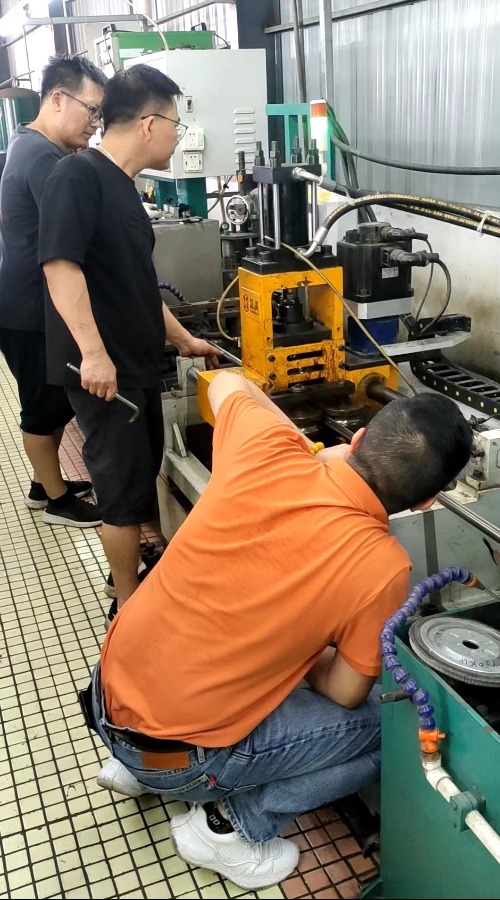 到了客戶現場,發(fā)現焊管整平效果有點小問題,有竹節(jié)印的狀況發(fā)生。在確認了問題的核心后,開始觀察產線上沒一道工序運行狀況,一個接著一個問題來進行排除?;ㄙM了4到6個小時后,終于把問題點找出來。